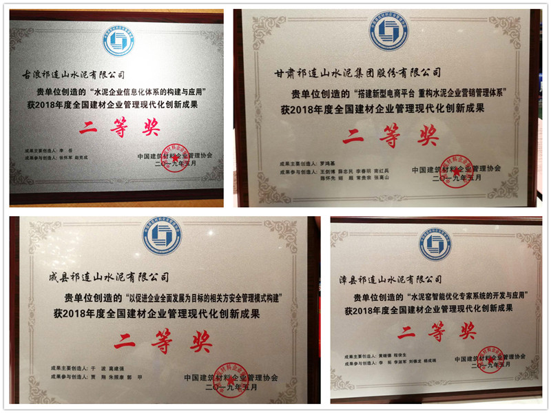 由股份公司總裁劉繼彬主創(chuàng)的《構(gòu)建水泥生產(chǎn)調(diào)度工業(yè)互聯(lián)網(wǎng)管理體系》榮獲2018年度全國建材企業(yè)管理現(xiàn)代化創(chuàng)新成果一等獎;股份公司副總裁、董事會秘書羅鴻基主創(chuàng)的《搭建新型電商平臺 重構(gòu)水泥企業(yè)營銷管理體系》、古浪公司總經(jīng)理李岳主創(chuàng)的《水泥企業(yè)信息化體系的構(gòu)建與應(yīng)用》、漳縣公司總經(jīng)理黃繼德、生產(chǎn)管理處高級主任工程師程俊生主創(chuàng)的《水泥窯智能優(yōu)化專家系統(tǒng)的開發(fā)與應(yīng)用》、成縣公司總經(jīng)理于波、安全環(huán)保處處長高建強主創(chuàng)的《以促進企業(yè)全面發(fā)展為目標(biāo)的相關(guān)方安全管理模式構(gòu)建》榮獲2018年度全國建材企業(yè)管理現(xiàn)代化創(chuàng)新成果二等獎。成縣公司黨委書記、總經(jīng)理于波被授予“2018年度全國建材企業(yè)管理創(chuàng)新突出貢獻人物”稱號。