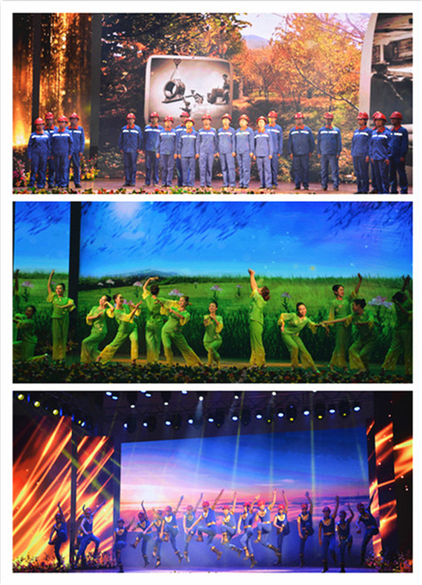 “我站在巍巍祁連山下放歌,歌唱一代又一代祁連山人創(chuàng)造的豐功偉績(jī),歌唱一代又一代祁連山人譜就的盛世華章……”晚會(huì)在歌伴舞《今天是你的生日,我的中國(guó)》中拉開序幕。晚會(huì)分為“永遠(yuǎn)的記憶”“登峰的腳步”“歡慶的時(shí)刻” “歌舞的暢想”4個(gè)篇章,以永登水泥廠的歷史為“點(diǎn)”,祁連山水泥發(fā)展壯大的歷程為“線”,彰顯中國(guó)建材集團(tuán)的光榮與夢(mèng)想為“面”,謳歌建材兒女的風(fēng)采,禮贊偉大的黨、偉大的祖國(guó)。