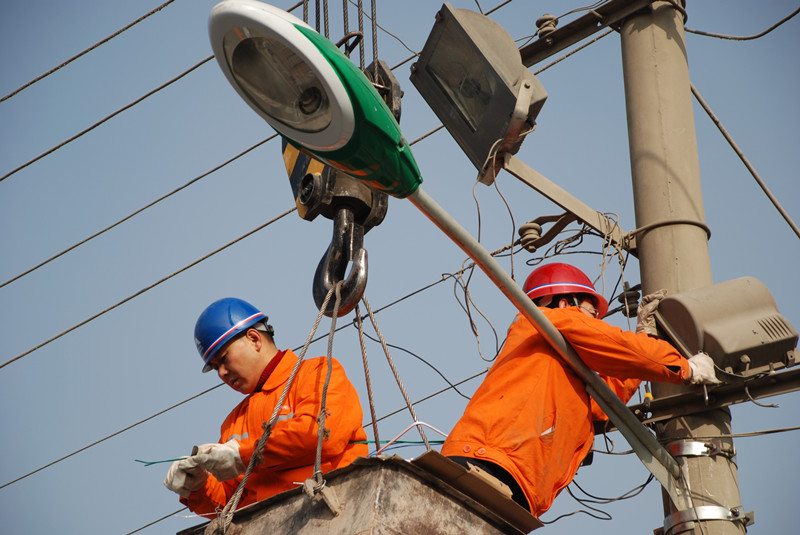 日前,天水公司投資7.2萬元在廠區(qū)、家屬區(qū)安裝了23盞環(huán)保節(jié)能型的路燈,亮化、美化了兩區(qū)環(huán)境。圖為維修部職工安裝新路燈的情景。(張瑞華/報道)