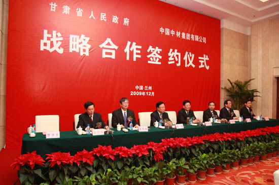 甘肅省省委書記陸浩,省長徐守盛,省委常委、省委秘書長姜信治,副省長石軍,省政府秘書長李沛文、省委副秘書長、省委政研室主任賈廷權(quán),省政府副秘書長贠建民;省發(fā)改委主任趙春,省工業(yè)和信息委主任李平,省財政廳廳長周多明,省國資委主任馬艾武;中材集團(tuán)董事長、中材股份董事長譚仲明,中材集團(tuán)黨委書記于世良,中材集團(tuán)黨委常委、中材股份總裁周育先,中材股份副總裁隋玉民、王廣林;甘肅祁連山建材控股有限公司董事長楊皓,祁連山控股總經(jīng)理、祁連山水泥董事長脫利成等出席股權(quán)轉(zhuǎn)讓儀式。儀式由李沛文主持。