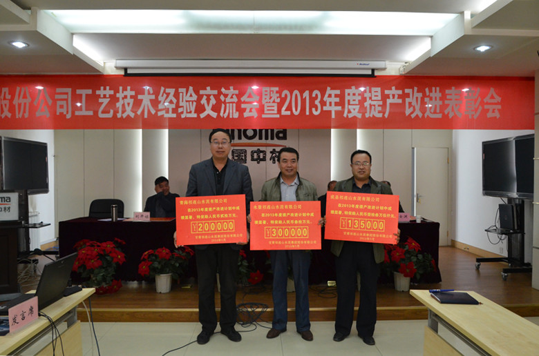 本網(wǎng)訊 5月6日,公司召開工藝技術(shù)經(jīng)驗(yàn)交流會(huì)暨2013年度提產(chǎn)改進(jìn)表彰會(huì),對(duì)2013年度水泥窯磨提產(chǎn)增效活動(dòng)中成績(jī)顯著的永登公司等8 家單位予以表彰獎(jiǎng)勵(lì),獎(jiǎng)勵(lì)金額(稅后)為118.5萬元,單項(xiàng)最高獎(jiǎng)金額度達(dá)20萬元。