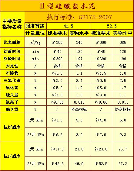 “祁連山”牌硅酸鹽水泥產(chǎn)品實(shí)物質(zhì)量與國家標(biāo)準(zhǔn)對比表