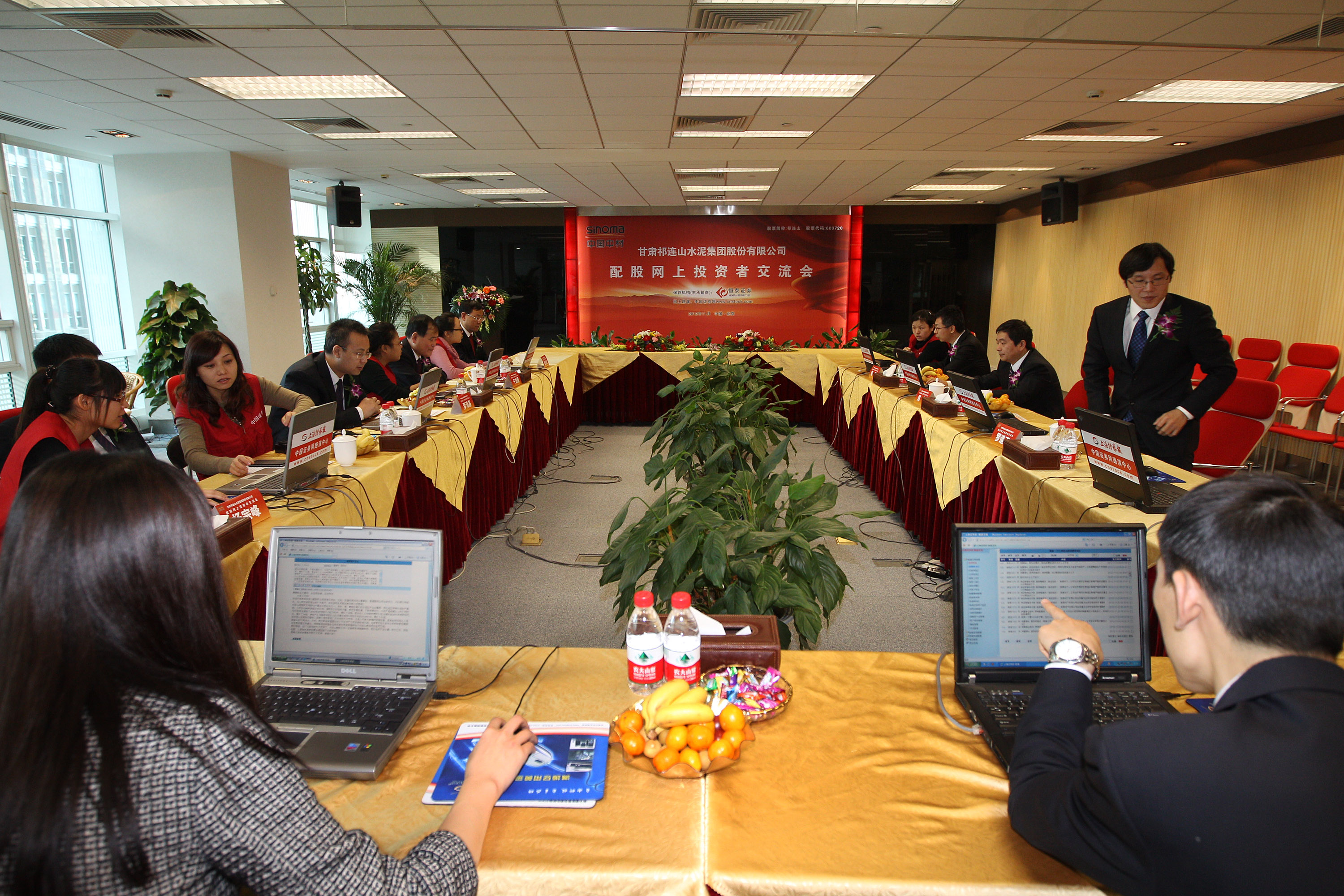 2012年11月23日,公司配股路演工作在中國(guó)證券網(wǎng)北京路演中心圓滿完成。參加本次路演的有公司董事長(zhǎng)脫利成、副總裁兼財(cái)務(wù)總監(jiān)寧成順、董事會(huì)秘書(shū)羅鴻基、證券事務(wù)代表?xiàng)钭诜逡约昂闾┳C券投資銀行部董事總經(jīng)理靳磊、董事副總經(jīng)理鄭勇、董事副總經(jīng)理羅道玉等項(xiàng)目組成員。