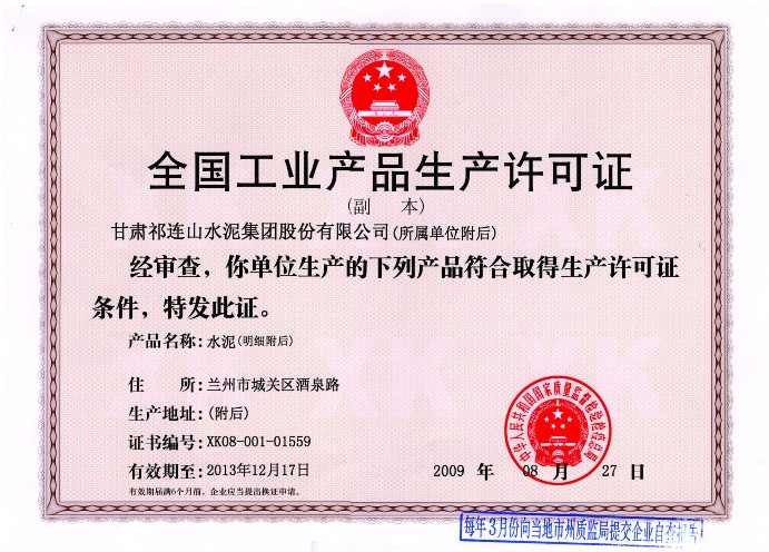 全國(guó)工業(yè)產(chǎn)品生產(chǎn)許可證副本