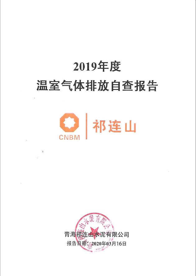 青海祁連山水泥有限公司 2019年度溫室氣體排放核查報告公示
