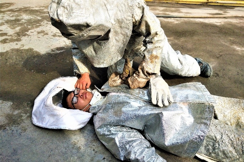 3月29日,民和公司組織開展了一次窯頭點(diǎn)火燒傷事故應(yīng)急演練。演練從事件發(fā)生、預(yù)案啟動(dòng)、傷員救治、現(xiàn)場調(diào)查、后期評估等環(huán)節(jié)模擬了窯頭點(diǎn)火燒傷事故應(yīng)急救援。充分檢驗(yàn)了公司專項(xiàng)應(yīng)急預(yù)案的針對性和有效性,進(jìn)一步強(qiáng)化了公司職工的應(yīng)急處置能力。圖為應(yīng)急演練現(xiàn)場。(蒙煒)