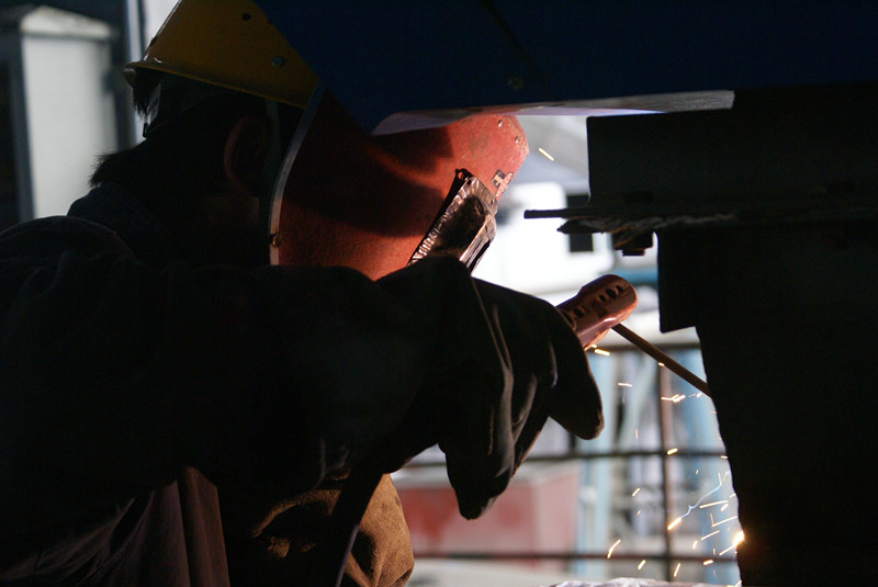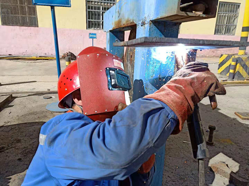 焊花飛濺,被焊工面罩遮擋嚴(yán)實(shí)的焊工,正在補(bǔ)焊平臺(tái)斷縫,在焊絲不斷的點(diǎn)擊下,一條漂亮的線條填滿了縫隙。公司的生產(chǎn)離不開電工、鉗工和焊工的努力付出,他們是保證公司各種設(shè)備正常運(yùn)行的診斷師和手術(shù)師,是他們的辛勤工作才有效保證了公司設(shè)備的有效運(yùn)行,向你們致敬!