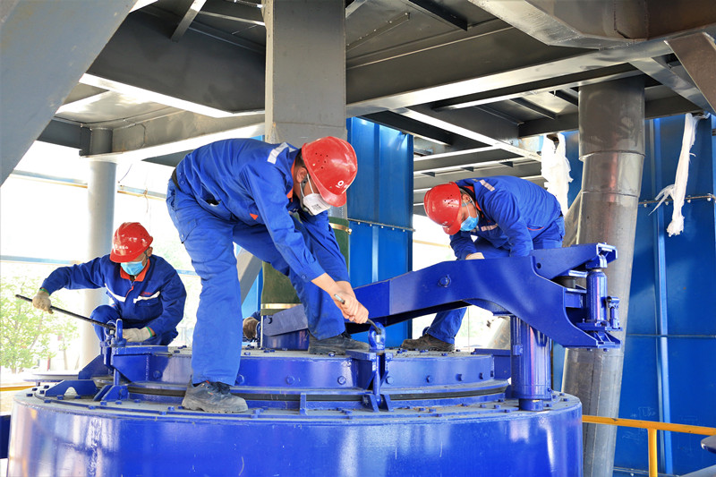 今年的天氣始終在低溫緋徊,襯衫和棉衣交替而行,而到了五一,似乎一個(gè)跨步,直接進(jìn)入盛夏。在二線水泥調(diào)配倉下面,楊發(fā)力、張華和張瑾正給4號(hào)下料倉安裝振打電機(jī),工作和天氣的炎熱讓他們看上去有些疲憊。連日來,他們一直實(shí)施3號(hào)入磨皮帶改造等小改小革工作,優(yōu)化工藝流程,降低能源消耗。隴南潮濕多雨,物料涌堵頻繁,為了保證下料通暢,成縣祁連山的技術(shù)和維修骨干,先后通過鎖風(fēng)喂料器改為司德伯閥、安裝振打電機(jī)等改造工作,解決堵塞問題,減輕勞動(dòng)強(qiáng)度、提高運(yùn)行效率,收效良好。節(jié)日期間,他們未雨綢繆,加班加點(diǎn),將可能出現(xiàn)的問題及早處理,作到放假不停生產(chǎn),維護(hù)正常的生產(chǎn)秩序。