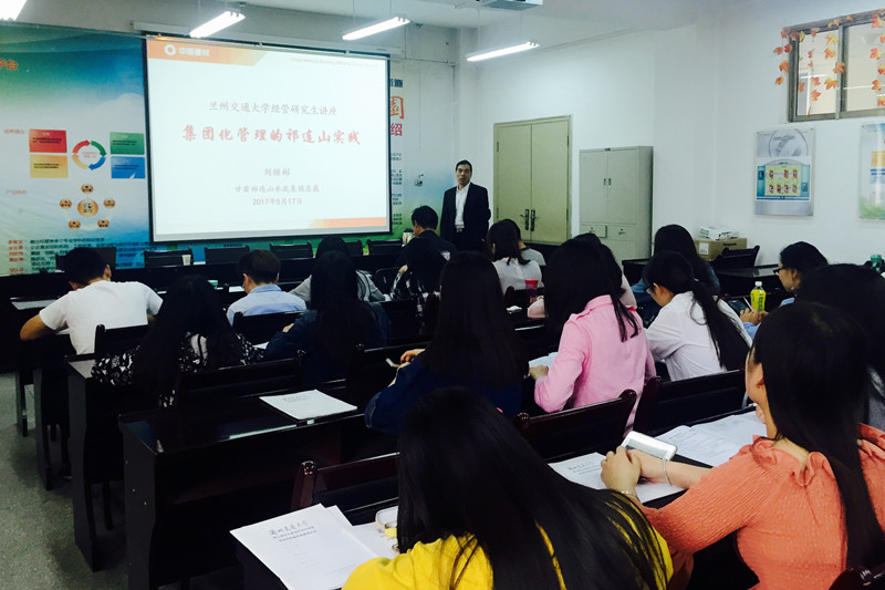 本網(wǎng)訊 5月17日,應(yīng)蘭州交通大學(xué)經(jīng)濟(jì)管理學(xué)院邀請(qǐng),公司總裁劉繼彬在蘭州交通大學(xué)經(jīng)濟(jì)管理學(xué)院進(jìn)行學(xué)術(shù)交流并作了題為《集團(tuán)化管理的祁連山實(shí)踐》的學(xué)術(shù)報(bào)告。講座由蘭州交通大學(xué)經(jīng)濟(jì)管理學(xué)院副院長(zhǎng)王久梗教授主持,蘭州交通大學(xué)經(jīng)濟(jì)管理學(xué)院學(xué)院院長(zhǎng)、MBA教育中心主任趙延龍教授、部分青年教師和全日制企業(yè)管理、產(chǎn)業(yè)經(jīng)濟(jì)學(xué)、會(huì)計(jì)專業(yè)碩士研究生聽取了報(bào)告。