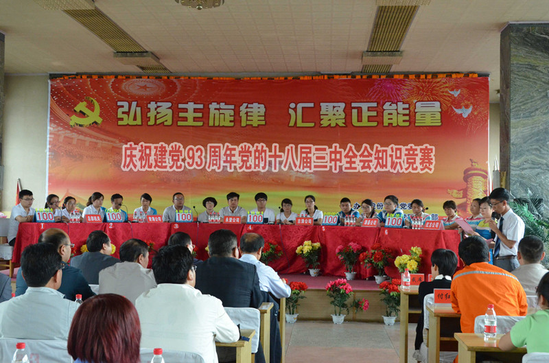 6月25日,公司慶祝建黨93周年黨的十八屆三中全會精神知識競賽在永登公司六樓會議室精彩上演。來自總部機(jī)關(guān)和各子公司的14支代表隊(duì)匯聚一起,摩拳擦掌,以題會友,拿出自己最好的水平競相挑戰(zhàn)。