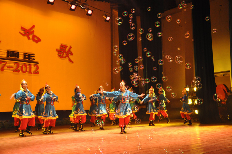 “你和太陽(yáng)一同升起,記載中國(guó)每次勝利。你和共和國(guó)攜手奮起,共同邁向新的世紀(jì)……”晚會(huì)在黨政工團(tuán)有關(guān)人員大合唱《五星紅旗》、《光榮的永泥人》的嘹亮歌聲中拉開(kāi)帷幕,配樂(lè)詩(shī)朗誦《我站在祁連山麓仰望》生動(dòng)地再現(xiàn)了55年前祖國(guó)各地聚集祁連山下,建設(shè)水泥生產(chǎn)線(xiàn)的情景,表達(dá)了祁連山兒女愛(ài)廠如家的高尚情懷??彀鍟?shū)《歷史的盛會(huì)》以股份公司第二次黨代會(huì)為主題,以說(shuō)唱的形式記載了公司從無(wú)到有,從小及強(qiáng)的發(fā)展過(guò)程。《快樂(lè)的布里亞特姑娘》、《草原上的小卓瑪》、《快樂(lè)的尕老漢》分別用蒙古族、藏族、回族民族舞蹈,藝術(shù)的再現(xiàn)了祖國(guó)各族兒女快樂(lè)幸福的生活。舞蹈《映山紅》生動(dòng)地表演了紅軍長(zhǎng)征后,江西革命根據(jù)地重新籠罩在白色恐怖下,根據(jù)地的婦女們?cè)邳h的領(lǐng)導(dǎo)下,機(jī)智巧妙的與敵人周旋的場(chǎng)景,讓觀眾重溫了一個(gè)時(shí)代的豪情。薩克斯《卡薩布蘭卡》,器樂(lè)合奏《夢(mèng)回大唐》、《火苗》通過(guò)西方樂(lè)器和中國(guó)民族器樂(lè),給觀眾帶來(lái)了一場(chǎng)視聽(tīng)盛宴。川劇《變臉》將中國(guó)非物質(zhì)文化遺產(chǎn)與魔術(shù)有機(jī)的結(jié)合起來(lái),一張張色彩斑斕的臉譜變化莫測(cè),引得臺(tái)下一片掌聲。整個(gè)晚會(huì)節(jié)目精彩紛呈、催人奮進(jìn),表達(dá)了永登公司廣大職工家屬在推動(dòng)企業(yè)又好又快發(fā)展的新征程中,再鑄新輝煌、再譜新篇章的壯志豪情。文藝晚會(huì)在《步步高》音樂(lè)的伴隨下圓滿(mǎn)謝幕。